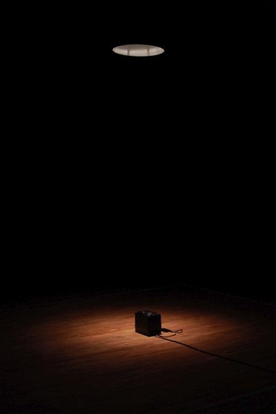 Two performers, a man and a woman, journey through a space of language, sound, light and image, not necessarily searching for something, but attempting perhaps, to come to terms with something. An array of media technologies are employed to create a physical experience in a physical space, one which attempts to realign, or at least plaster over the cracks of, the Cartesian mind/body split. In this space, sound and light offer guidance, but confusion is never far away."